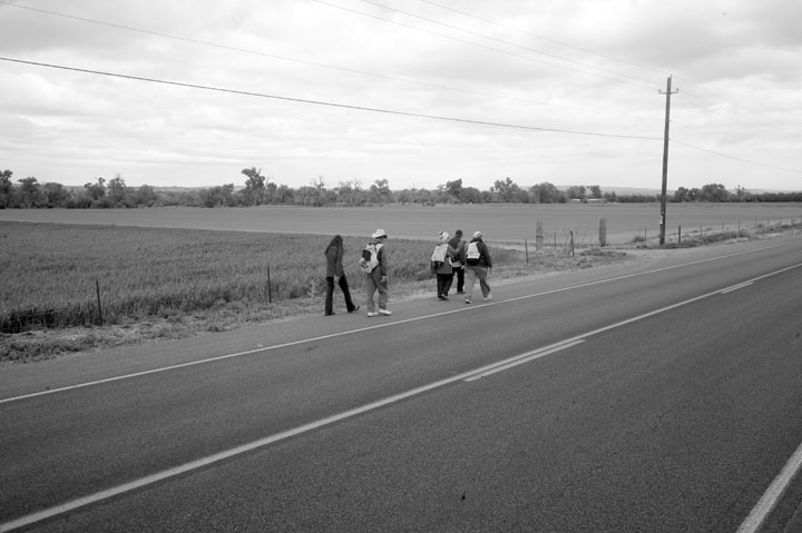 I liked hugging the girls. They needed baths. They needed sleep. A few walked barefoot, which would not be remarkable other than the fact that they had walked to Albuquerque from the Port of Los Angeles, a distance of 810 miles, where 1,500 people had rallied to send them off. Even undocumented workers, who walk a lot, don’t walk this far. So I invited Ed Fallon, the organizer, to my house and we talked. He is a follower of Gandhi who famously walked to the sea.
