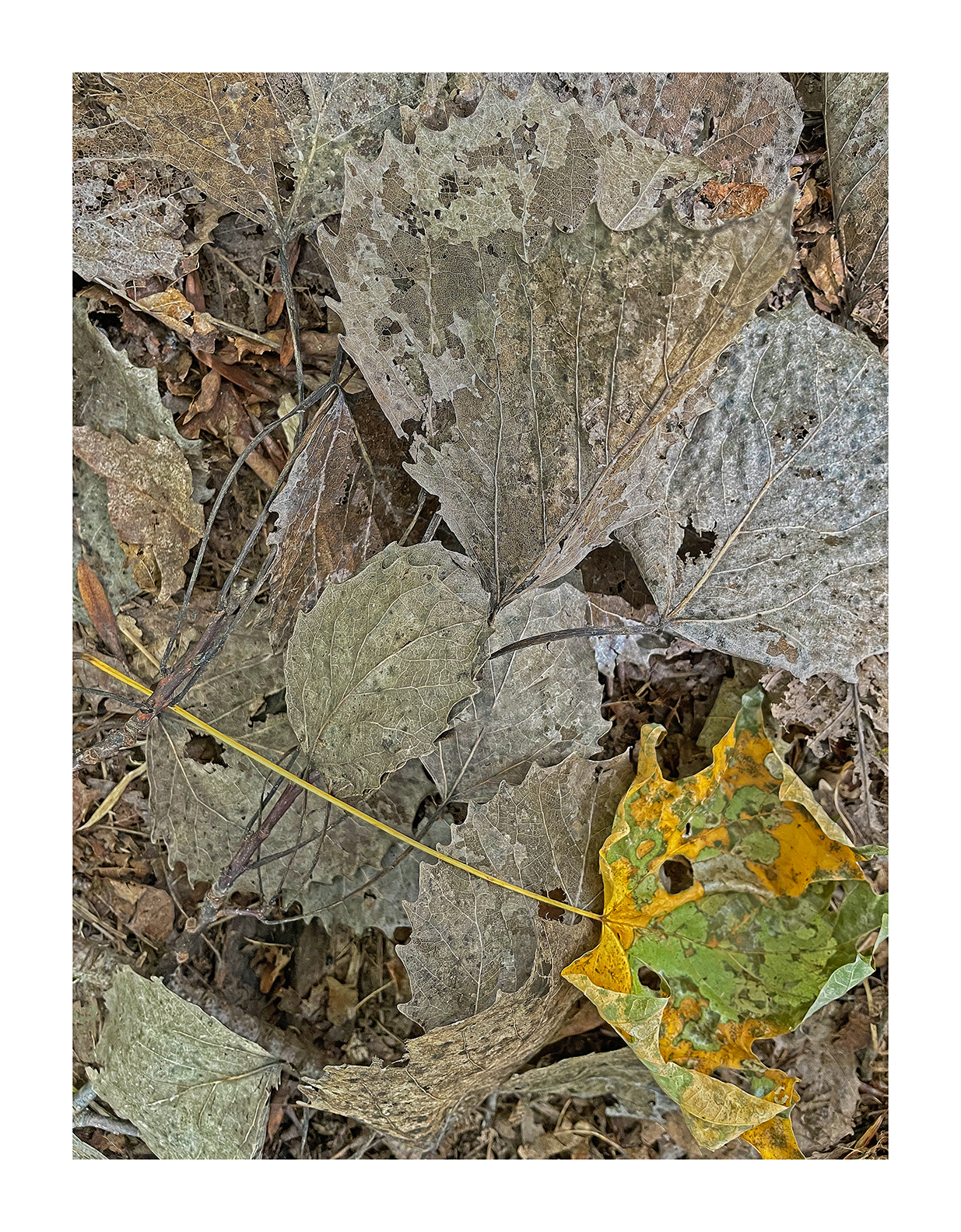 Painter, early photo gallery owner, book Designer, Guy Russell’s work is part of the origin story of Bleak Beauty. When Addison House went bankrupt, and the publication of The Paper Negative (1980) was halted, Guy, then the production manager of Addison House said “why don’t you publish it yourself”; and Bleak Beauty was born. Guy designed and produced The Paper Negative , the first Bleak Beauty imprint. He then went on to partner with Danny Lyon in designing and producing Merci Gonaïves (1988), I Like to Eat Right on the Dirt (1989, still in print and on sale here), Memories Of the Southern Civil Rights Movement (1992, in print and re-issued by Twin Palms in Santa Fe), and Knave of Hearts (1999, in print from Twin Palms, Santa Fe.) A consummate artist in every field he works in, look at the perfection he brings to these pictures, all made within walking distance of his New England home and studio. Guy calls the series “Returning to Dust” .